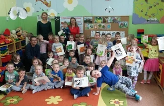 Spotkanie zakończono wręczeniem dyplomów dla obu grup na ręce wychowawców (Małgorzaty Błoch oraz Marzeny Rydz) oraz podziękowań dla każdego przedszkolaka za udział w spotkaniu z imienną dedykacją od autora. Dzieci otrzymały także drobny upominek książkowy od PTB Koła Łódzkiego.