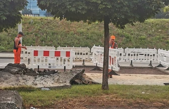 Wodociąg uległ awarii w sobotę. Od tego czasu służby PWiK pracowały, aby zlikwidować problem. Wodociąg został już naprawiony, ale na miejscu trwają jeszcze roboty związane z wymianą nawierzchni jezdni. We wtorek zerwane zostały pozostałości po zniszczonym asfalcie i ułożona podbudowa, a w środę ma zostać wylana nowa nakładka.