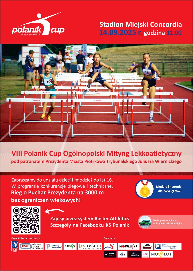 Klub Sportowy Polanik zaprasza dzieci i młodzież do lat 16 do udziału w VIII Ogólnopolskim Mityngu Lekkoatletycznym - Polanik Cup. Start 14 września godzina 11:00. Stadion Miejski Concordia.