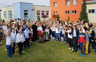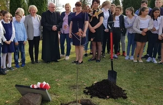 Po części artystycznej wszyscy przeszli przed budynek szkoły, gdzie został posadzony Dąb Niepodległości. - Dęby są symbolem siły, trwałości, długowieczności i szlachetności. To drzewo, które jest związane z dziejami Polski od początków jej istnienia – mówiła podczas uroczystości dyrektor szkoły Iwona Zapała. - Pragniemy, aby posadzone przez nas drzewo było symbolem naszych polskich korzeni, naszych więzi z ojczyzną i miłości do polskiej ziemi, symbolem naszej wspólnej troski o Ojczyznę. Chcemy, żeby Polska była traktowana jako wspólne dobro, o które trzeba dbać z należytym szacunkiem. Życzymy Polsce, żeby nigdy już nie musiała walczyć o swoje terytorium, żeby była szanowana, mocna jak dąb, zakorzeniona w swych wartościach, silna i nieuległa. Marzeniem naszym jest, aby to drzewo wzrastało, piękniało i cieszyło następne pokolenia w co najmniej dwusetną rocznicę odzyskania niepodległości. Niech nasz dzisiejszy czyn odbije się echem w przyszłości.