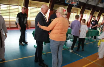 - Cieszę się, że możemy gościć na naszej hali tylu młodych zawodników z pasją. Dobrze, że macie mądrych rodziców, którzy pomagają Wam w realizacji swoich marzeń - mówił wójt Marceli Piekarek, który razem z posłem Grzegorzem Lorkiem przyglądali się zmaganiom młodych karateków.
