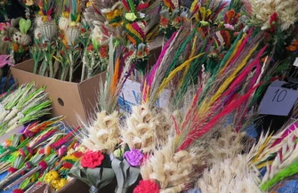 Żeby sprawdzić, jakie palmy można w Piotrkowie dostać i które cieszą się największym popytem, zajrzeliśmy w piątek – oczywiście - na piotrkowski targ Choć deszczowa, ponura pogoda nieszczególnie zachęcała do spaceru, to i tak stoisk z palmami dało się zauważyć co najmniej kilka. Wybór więc spory. Przy jednym z nich spotykamy panią Anettę Pawlik. Na co dzień sprzedaje tu owoce i warzywa. Trudno je jednak dostrzec - rzodkiewki, sałaty czy inne nowalijki są przysłonione, jakby schowane. Samo stoisko jest przede wszystkim ozdobione okazałymi, kolorowymi plecionkami. Jak tłumaczy nam sprzedawczyni, "boom" na palmy zaczął się już mniej więcej trzy tygodnie temu. - Wtedy zwykle dajemy znać, że jesteśmy. Wiele osób zaopatruje się w palmy już wcześniej, ale są i oczywiście tacy, którzy kupują na ostatnią chwilę – mówi. Ceny - od dwóch złotych za sztukę (kilkunastocentrymetrowe, niewielkie palemki) do nawet... siedemdziesięciu złotych. Brzmi spektakularnie, prawda? Pytamy, co za taką sumę można dostać.- Specjalne, duże artystyczne palmy ozdobne, które sprowadzamy na zamówienie. Musi znaleźć się na nie koneser. Już się sprzedały – tłumaczy pani Anetta. Inne, mniejsze i tańsze można znaleźć za 10, 12 czy 16 złotych. Największym powodzeniem wśród klientów cieszą się te za 6 czy 8 złotych. - Zwykle sprowadzamy je z okolic Sandomierza. To jedno z takich zagłębi, jeśli chodzi o palmy – przyznaje.