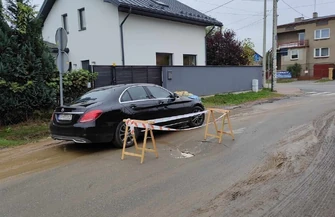 Ja jechałem tędy około 5:30. Już wtedy zauważyłem to zapadlisko. Sąsiedzi zorganizowali worki na śmieci, które umieścili w tej dziurze, żeby inni nie uszkodzili sobie samochodów, a później ustawili zapory. Wiem jednak, że takie uszkodzenia się zdarzyły. Między innymi jedna pani wjechała w tę wyrwę - mówił nasz rozmówca.