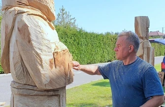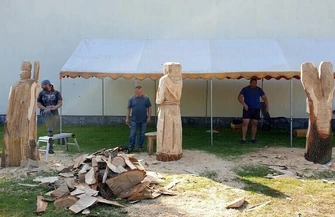 - Tworzymy trzy figury, które będą przedstawiały anioła, św. Franciszka z Asyżu i św. Wojciecha. Na razie trzeba zebrać z kloców drewna warstwy zbędnego materiału, a potem już z wyłaniającego się kształtu dłutami będziemy kończyć pracę, wydobywając detale - powiedział artysta rzeźbiarz, Jan Milczarek, któremu towarzyszą podczas pleneru także Mariusz Borowy z Turzy Wielkiej koło Działdowa i Łukasz Zabłocki z Lututowa.
