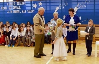 W tym roku głównym organizatorem uroczystości była klasa II. W przygotowania zaangażowali się również rodzice uczniów - włączyli się do pomocy przy dekoracjach, przygotowali stoły, upiekli ciasta i ciasteczka, przygotowali dla gości gorącą herbatkę i kawę. Dziadkowie zasiedli przy stołach i z niecierpliwością oczekiwali na rozpoczęcie występu wnucząt. Na twarzach dzieci widać było ogromną radość, podekscytowanie, ale też skupienie. Dzieci zaprezentowały program artystyczny w formie show „Babciu, Dziadku, ja się wcale nie chwalę, ja po prostu mam talent”. Program prowadziła dwójka prezenterów - uczniów z klasy II, którzy w formie zabawnych dialogów zapowiadali wykonawców, wcielających się w znane gwiazdy muzyczne. Młodzi artyści nie tylko śpiewali, grali i tańczyli, ale też recytowali wiersze. Ich występy oceniane były przez jury, składające się z uczniów klasy II i zaproszonych gości. Na scenie rozbrzmiewała muzyka z lat 70., 80. i 90. Dziadkowie świetnie bawili się przy muzyce z lat swojej młodości, słuchając i jednocześnie oceniając występy wnucząt, które tańczyły lub śpiewały utwory Village People, Modern Talking, Haliny Kunickiej, Czerwonych Gitar czy zespołu Akcent. Program zakończył się podsumowaniem głosowania na młodych artystów i losowaniem nagród dla głosujących gości. Po występach dzieci wręczyły babciom i dziadkom własnoręcznie wykonane prezenty.