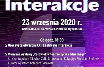 Festiwal rozpoczyna się w środę od wernisażu wystawy „Człowiek w teatrze życia codziennego” w galerii ODA przy ul. Sieradzkiej 8. Początek o godz. 18, a wystawę będzie można oglądać do 11 października.
