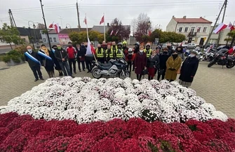 Wszyscy zebrani uwiecznieni zostali na pamiątkowym zdjęciu z narodową flagą ułożoną z biało-czerwonych chryzantem.