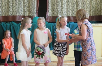 Uroczyste rozdanie nagród zostało poprzedzone przez występ uczniów klas pierwszych, drugich i trzecich. W czasie przedstawienia dzieciaki wymieniły także zalecenia, co do których należy się stosować, by bezpiecznie spędzić wakacje. Dopiero później głos zabrała wicedyrektor szkoły.