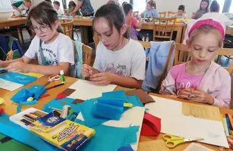 Na zajęciach powstały prace do wiersza Aleksandra Fredry pt. "Małpa w kąpieli" oraz kolaże o dowolnej tematyce, do których wykonania dzieci wykorzystały różnorodne materiały: gazety, pióra, filc.
