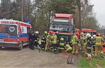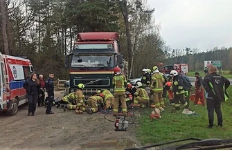 Pracujący pod uszkodzonym samochodem mężczyzna, został przyciśnięty przez naprawianą ciężarówkę. Został on wydobyty dzięki użyciu podnośników oraz poduszek hydraulicznych i przetransportowany do szpitala. W akcji uczestniczyli strażacy z KSRG OSP Sulejów, KSRG OSP Dąbrowa nad Czarną oraz 2 zastępy JRG Piotrków Trybunalski.