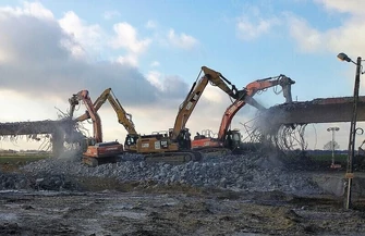 Praca przy wyburzaniu wiaduktu wymaga ciężkiego sprzętu: