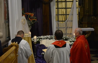 • Zgromadzonym udzielono Komunii Świętej, a liturgia zakończyła się złożeniem Najświętszego Sakramentu do grobu na znak złożenia tam Jezusa.