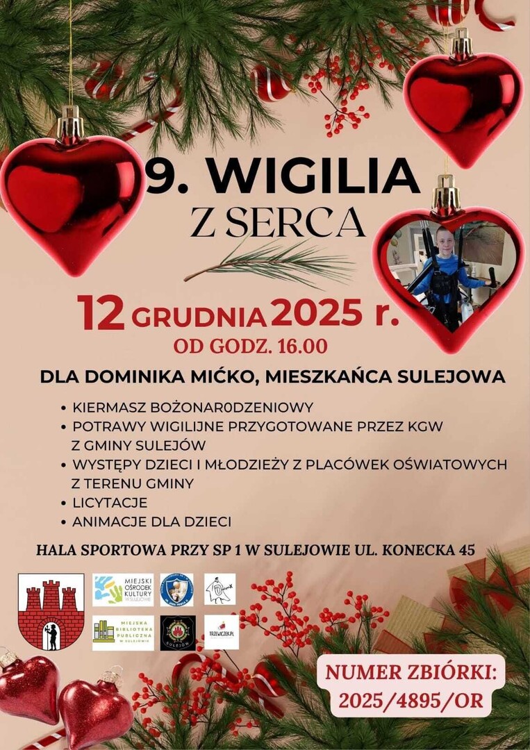 Już 12 grudnia 2025 roku mieszkańcy Sulejowa i okolic po raz kolejny spotkają się na wyjątkowym, świątecznym wydarzeniu charytatywnym. „Wigilia z Serca”, organizowana już po raz dziewiąty, na stałe wpisała się w kalendarz lokalnych inicjatyw dobroczynnych, a jej celem jest niesienie pomocy potrzebującym z gminy. Tegoroczna edycja zostanie zorganizowana z myślą o Dominiku Mićko, mieszkańcu Sulejowa, który potrzebuje wsparcia w dalszym leczeniu i rehabilitacji.