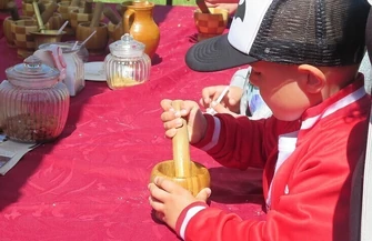 Na boisku UJK w Piotrkowie przygotowano dla mieszkańców wiele atrakcji. Były grupy rekonstrukcyjne, warsztaty lepienia z gliny, degustacje średniowiecznych przysmaków oraz punkt tworzenia koszyków z wikliny. Dla chętnych zorganizowano także pokazy strzelania z łuków oraz wystawę broni z Archiwum Państwowego z Piotrkowa. - Stworzyliśmy także warsztaty marcepanowe, dzięki czemu dzieci mogą wykonać prawdziwy marcepan na podstawie starych receptur. Przy użyciu migdałów, cukru, wody różanej, bądź wody fiołkowej powstaje naturalny, własnoręcznie zrobiony produkt. Oprócz dobrej zabawy, jest to także mała lekcja historii dla najmłodszych. Chcemy uczyć ich nie tylko teorii, ale też praktyki. Przygotowania do festynu musieliśmy rozpocząć już jakiś czas temu, ponieważ jest tu bardzo dużo eksponatów, o które trzeba było odpowiednio zadbać. Jesteśmy pasjonatami historii, dlatego nie stanowiło to dla nas problemu i chętnie włączaliśmy się do tworzenia Wioski Wikingów - mówiła Małgorzata Radomska, studentka III roku historii.
