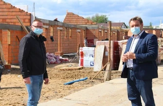- W zaawansowanym stopniu są prace murarskie. Wkrótce rozpocznie się montaż konstrukcji dachowych. Ze względu na właściwą organizację pracy, w tej chwili toczą się roboty przy części obiektów. Po zamknięciu ich stanu surowego rozpoczną się prace przy kolejnych budynkach. Roboty dotyczące utwardzenia terenu, parkingów, placu zabaw realizowane będą w końcowej fazie budowy – tłumaczy Kamil Madejczyk, kierownik Referatu Budownictwa i Nieruchomości Urzędu Gminy w Woli Krzysztoporskiej, który wraz z wójtem Romanem Drozdkiem odwiedził plac budowy.