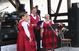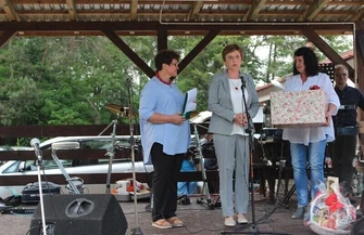 Elżbieta Bijoch przekazała na ręce szefowej KGW z Lubiaszowa Ewy Dramińskiej prezent od burmistrza Andrzeja Jarosa w podziękowaniu za przygotowanie tegorocznego Saganka.