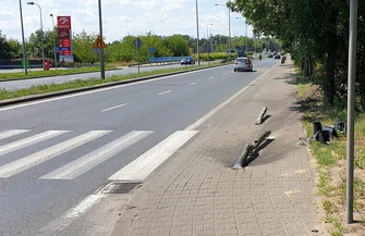 Na skrzyżowaniu nie działa sygnalizacja świetlna, która ucierpiała na skutek uderzenia jednego z samochodów.