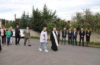Następnie zaproszeni goście oficjalnie przecięli wstęgę na nowej drodze, a zrealizowaną inwestycję poświęcił proboszcz parafii w Rozprzy ks. Wiesław Płomiński.