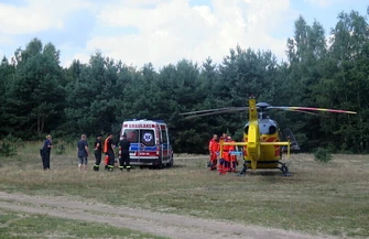 Pierwszej pomocy udzielili mężczyźnie sąsiedzi, którzy schładzali oparzenia do momentu przybycia służb. Na miejsce przyleciał śmigłowiec LPR, który przetransportował poszkodowanego do szpitala.