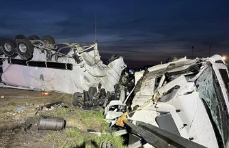 Policjanci oraz strażacy, którzy dotarli na miejsce, ujrzeli nietypowy widok. Na jezdni znajdowała się powiem cysterna wywrócona kołami do góry. Pojazd uderzył w bariery ochronne, po czym wypadł z drogi.
