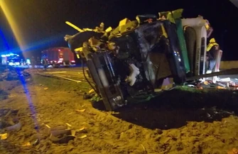 Pojazd ciężarowy najechał tam na inną ciężarówkę, która zatrzymała się na poboczu. Jeden z pojazdów przewrócił się, a przewożony towar wysypał się na jezdnię. Na szczęście nikt nie odniósł poważniejszych obrażeń. Obecnie zablokowany jeden pas ruchu w kierunku Katowic.