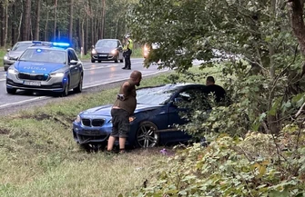 Do groźnie wyglądającego zdarzenia doszło w niedzielę po południu na drodze krajowej nr 12 pomiędzy Piotrkowem i Poniatowem. Sportowe BMW wypadło z drogi, dachowało i zatrzymało się w krzakach.