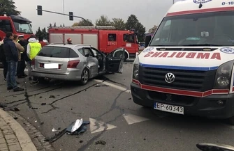 25-letnia kobieta podróżująca peugeotem wjechała na skrzyżowanie na czerwonym świetle i zderzyła się z oplem, prowadzonym przez 64-letniego kierowcę, który jechał od strony Bełchatowa. Oboje byli trzeźwi, kierowca opla został zabrany do szpitala.