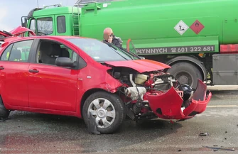 Z nieoficjalnych informacji wynika, że cysterna uderzyła w tył czerwonej toyoty, która - skręcając w lewo - zderzyła się z jadącym z naprzeciwka autem tej samej marki. W zdarzeniu brały udział trzy osoby. Do szpitala przewieziona została jedna z nich.