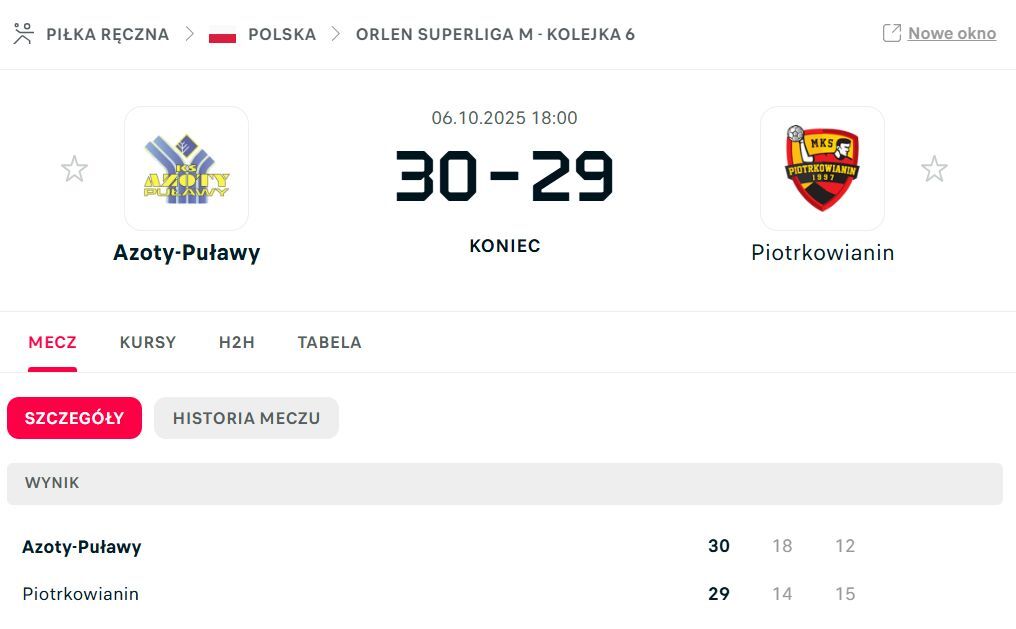 Niestety ostatecznie Azoty wygrały 30-29.