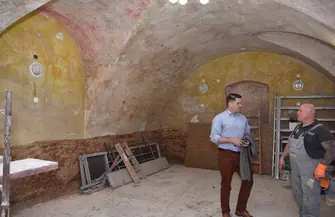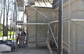 Prace przebiegają bardzo sprawnie. Zbite są już tynki wewnętrzne i zewnętrzne oraz stare płytki z podłogi. Wewnątrz gruntowane są ściany, a na elewacji uzupełniane ubytki, naprawiane gzymsy oraz układane tynki. Startują też prace na dachu.