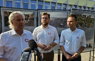 Wystawa znajduje się na terenie Akademii Piotrkowskiej i jest ona typowo polityczna. To sytuacja bez precedensu, gdy w trakcie kampanii wyborczej wyższa uczelnia, która powinna być miejscem dyskusji, debaty, gdzie nie powinno uprawiać się polityki, aktywnie włącza się w kampanię polityczną. Apelujemy o przeniesienie tej wystawy z miejsca, które nie powinno temu służyć. Ponadto wystawa powinna być zweryfikowana, gdyż zawiera ona nieprawdziwe treści. Wzywamy rektora Akademii Piotrkowskiej do dymisji, bo to pan jest odpowiedzialny za to, co stało się tutaj. Ta wystawa jest haniebna! Powinien podać się pan do dymisji - mówi poseł Cezary Grabarczyk.