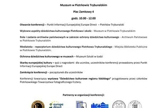 10 maja godz. 10.30 -12.30 - „Dziedzictwo kulturowe Europy - pamięć i ochrona” - konferencja, Muzeum w Piotrkowie Trybunalskim, wstęp wolny