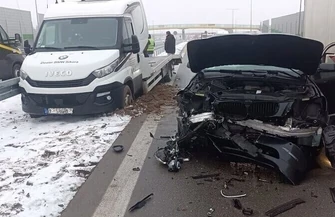 Do niebezpiecznie wyglądającego zdarzenia doszło w poniedziałkowy (06.12.2021) poranek na autostradzie A1. W okolicach węzła Piotrków Trybunalski Południe zderzyły się ze sobą samochody marek BMW oraz Iveco.