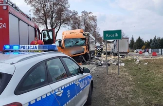 Wstępne ustalenia wskazują, że kierujący ciągnikiem siodłowym man z naczepą, z nieznanych na tę chwilę przyczyn zjechał na przeciwległy pas drogi i uderzył w jadącą z przeciwka ciężarówkę. W wypadku ranny został kierowca mana. Na miejscu policjanci zabezpieczają ślady i ustalają świadków, by ustalić przebieg zdarzenia - mówi asp. sztab. Barbara Stępień, oficer prasowy Komendy Powiatowej Policji w Opocznie.