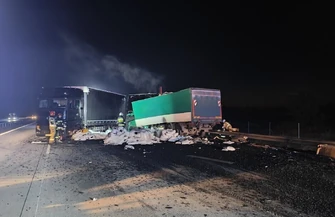 Jedna z ciężarówek stała na pasie awaryjnym z powodów problemów technicznych pojazdu. Kierujący drugą ciężarówką 39-latek uderzył w unieruchomiony pojazd. W wyniku zderzenia, 39-letni kierowca oraz pasażerka pojazdu zostali przetransportowani do szpitala celem dalszych badań. Ich stan nie zagrażał życiu. Wszyscy uczestnicy tego zdarzenia byli trzeźwi - relacjonuje asp. Dariusz Kaczmarek, oficer prasowy radomszczańskiej policji.