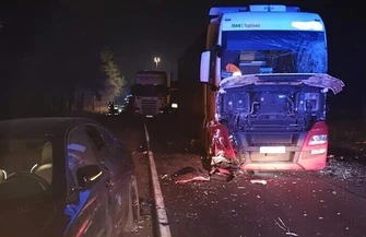 Kierujący manem z naczepą jechał w kierunku Łodzi. Kierowca nie zachował odpowiedniej odległości przed poprzedzającym go pojazdem i najechał na tył bmw. W wyniku zderzenia ciężarówka zjechała na przeciwny pas ruchu i następnie uderzyła w renault z naczepą. Z kolei renault również zjechało na przeciwległy pas ruchu, gdzie zderzyło się z ciężarową scanią z naczepą i kolejnym osobowym bmw.