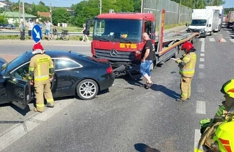 Zderzyły się tam trzy pojazdy: dwa samochody osobowe i laweta.