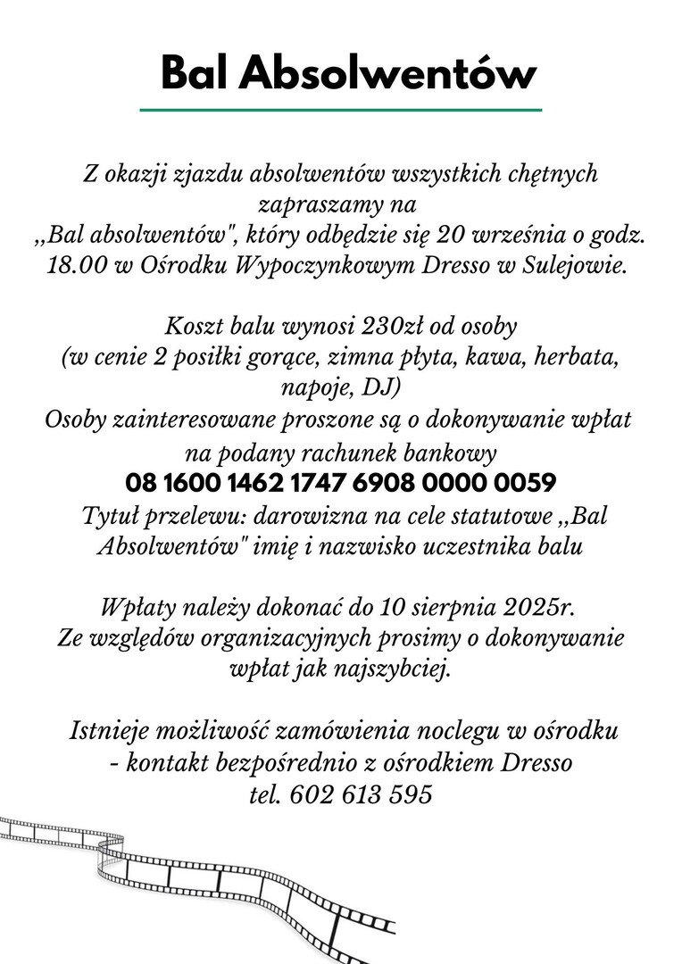 Absolwentów i sympatyków szkoły, zapraszamy do wspólnego świętowania.