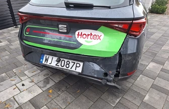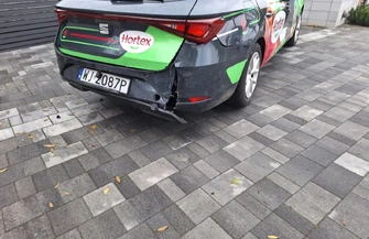 Samochód uderzył w zaparkowanego na podjeździe Seata Leona, doprowadzając do uszkodzenia obu aut. Na miejscu interweniowali policjanci. Nikomu nic się nie stało.