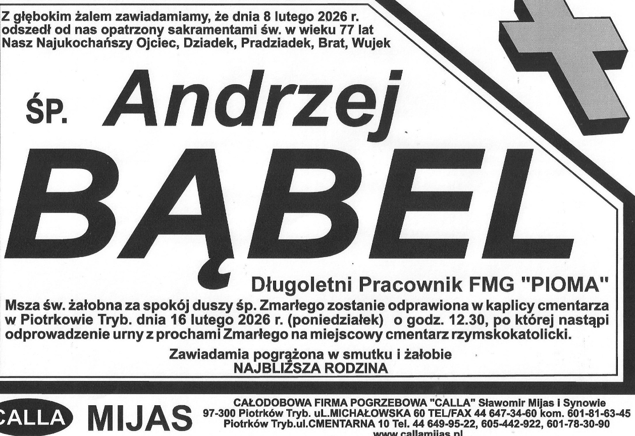 Zmarł Andrzej Bąbel – wieloletni zawodnik Concordii Piotrków, a także nieistniejącego już GKS Piotrcovia. W tym pierwszym z klubów grał na poziomie ówczesnej II ligi (dziś zaplecze najwyższej klasy rozgrywkowej). Pogrzeb odbędzie się w poniedziałek 16 lutego. Miał 77 lat.