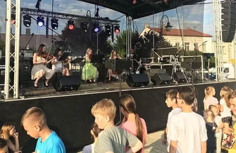 Wieczór na pl. Jagiełły zakończyły koncerty zespołu Forteca oraz występ wirtuoza skrzypiec Kamila Skickiego, który zagrał na laserowej harfie.