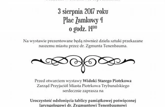 Podczas wystawy prezentowane będą również dzieła sztuki przekazane naszemu miastu przez doktora Zygmunta Tenenbauma. Z kolei przed otwarciem wystawy (godz. 13) Zarząd Przyjaciół Miasta Piotrkowa Trybunalskiego zaprasza do uczestnictwa w odsłonięciu tablicy pamiątkowej poświęconej laryngologowi doktorowi Tenenbaumowi. Tablica zostanie odsłonięta przy budynku w al. 3 Maja 23.