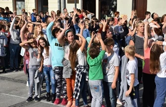 W środowe południe na płycie piotrkowskiej Starówki zebrało się około ośmiuset uczniów szkół podstawowych, gimnazjalnych i średnich. - Celem spotkania był happening polegający na utworzeniu ze wszystkich przybyłych uczestników „żywego” napisu o treści: „800 LAT”, nawiązującego wprost do jubileuszu miasta – podkreślają organizatorzy.