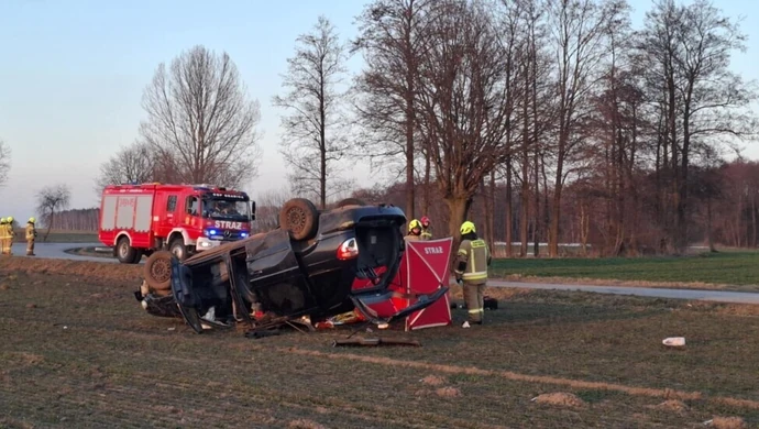 Wypadek w gminie Grabica. Jeden z pojazdów dachował