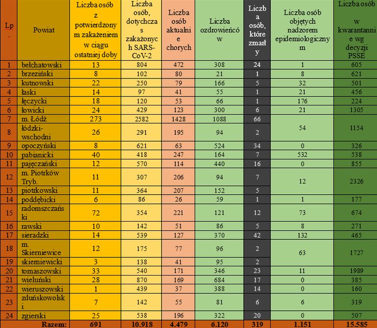 Aż 273 nowe przypadki odnotowano w ciągu ostatniej doby w Łodzi. Sporo także w powiecie radomszczańskim, bo 72.