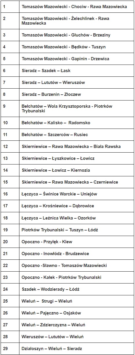 Poniżej prezentujemy wszystkie linie zaproponowane przez Samorząd Województwa Łódzkiego.